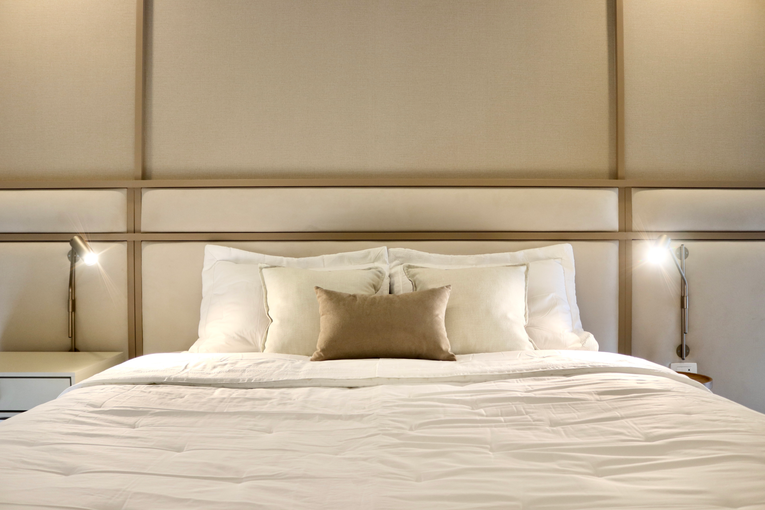 Para este Dormitorio pensamos en la comodidad y funcionalidad, diseñamos entorno a una paleta de tonos claros para lograr un espacio de desconexión total.