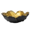 Bowl decorativo con forma orgánica de pétalos y acabado en dorado envejecido con exterior oscuro.