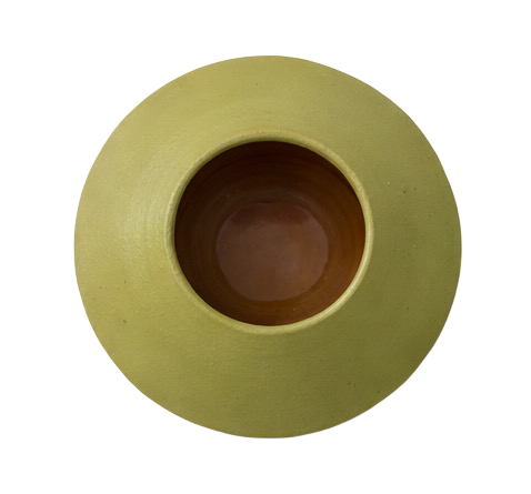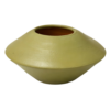 Jarrón decorativo de cerámica con silueta orgánica y acabado mate en tono verde oliva.